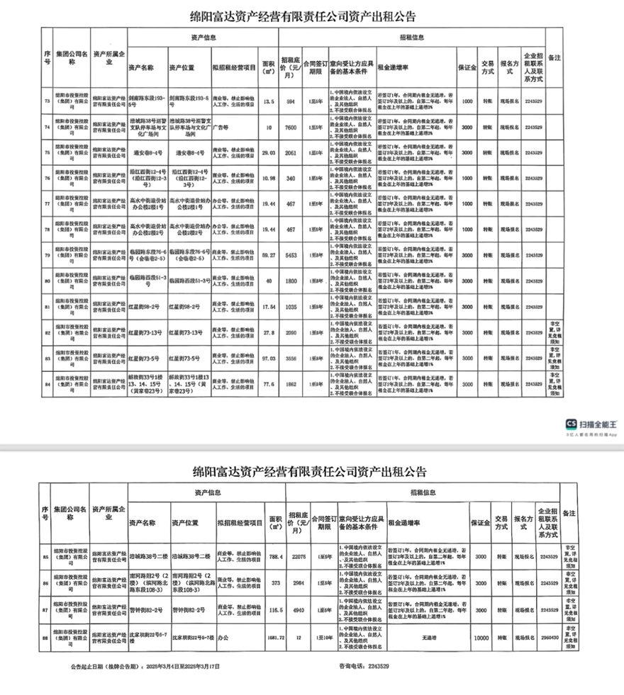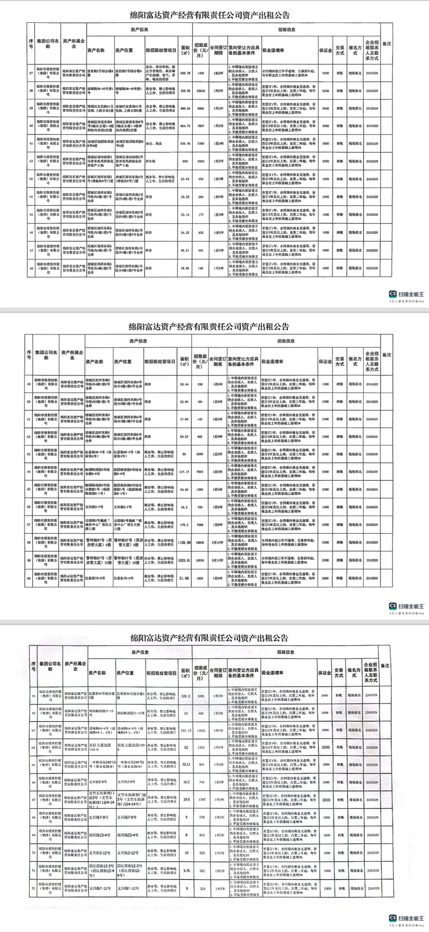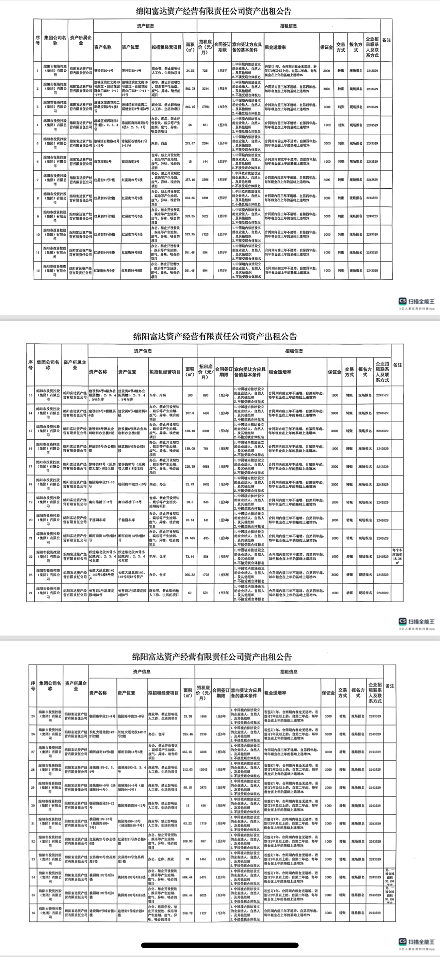 綿陽富達資產(chǎn)經(jīng)營有限責任公司資產(chǎn)出租公告