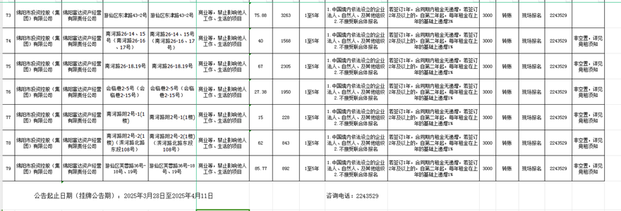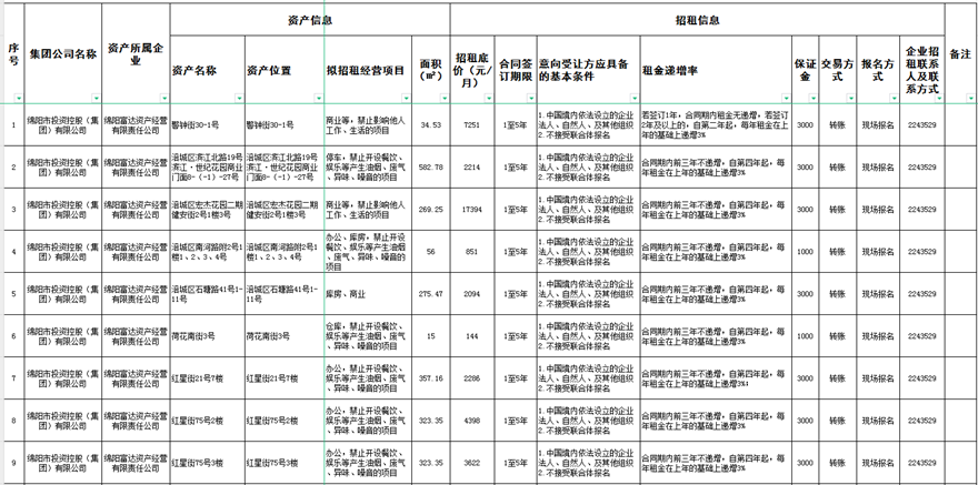 綿陽富達資產(chǎn)經(jīng)營有限責任公司出租公告