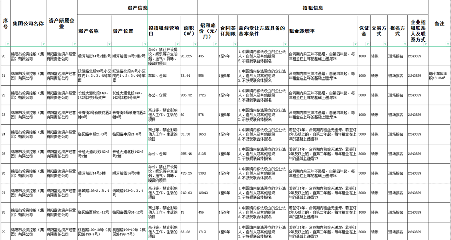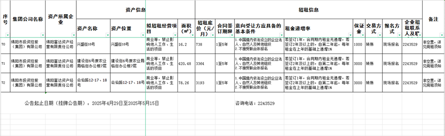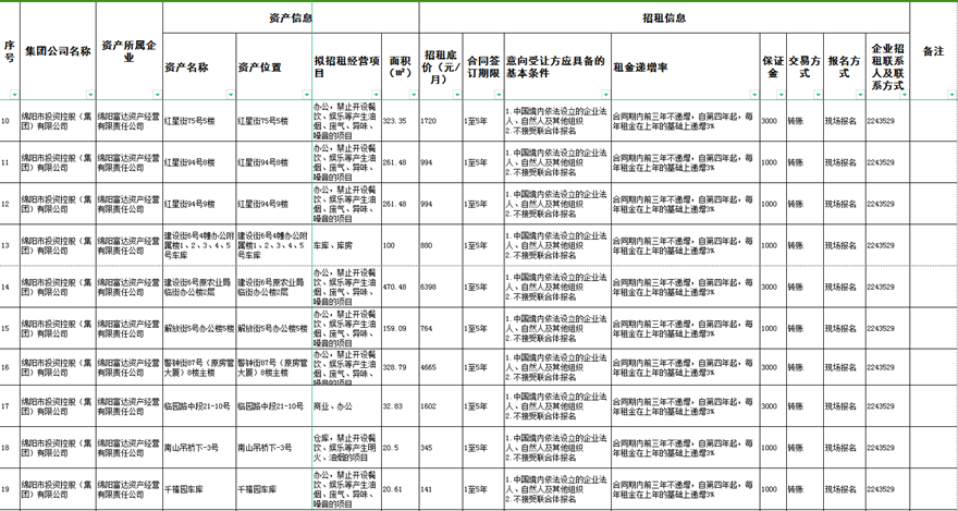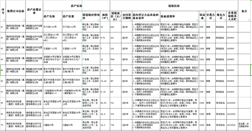 綿陽富達資產(chǎn)經(jīng)營有限責任公司資產(chǎn)出租公告