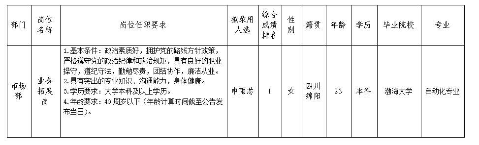 根據(jù)綿陽市建設(shè)工程質(zhì)量檢測中心有限責任公司發(fā)布的招聘公告及招聘相關(guān)規(guī)定,經(jīng)筆試、面試、背景調(diào)查、體檢等程序,擬錄用申雨芯同志到綿陽市建設(shè)工程質(zhì)量檢測中心有限責任公司工作,現(xiàn)予以公示,具體情況如下: